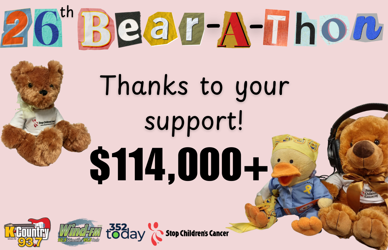 We are BEARY grateful for your support of the 26th Bear-A-Thon!! If you didn’t get a chance to participate, you can still donate to help the kids!