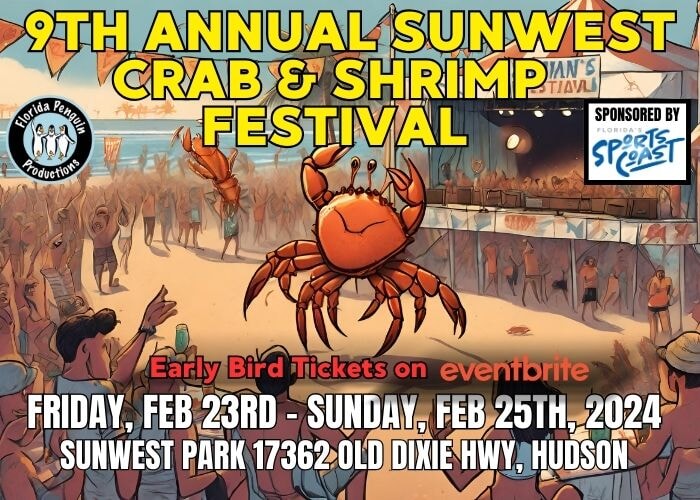 It’s time to enjoy everyone’s favorite seafood festival at the beautiful SunWest Park in Hudson, FL!