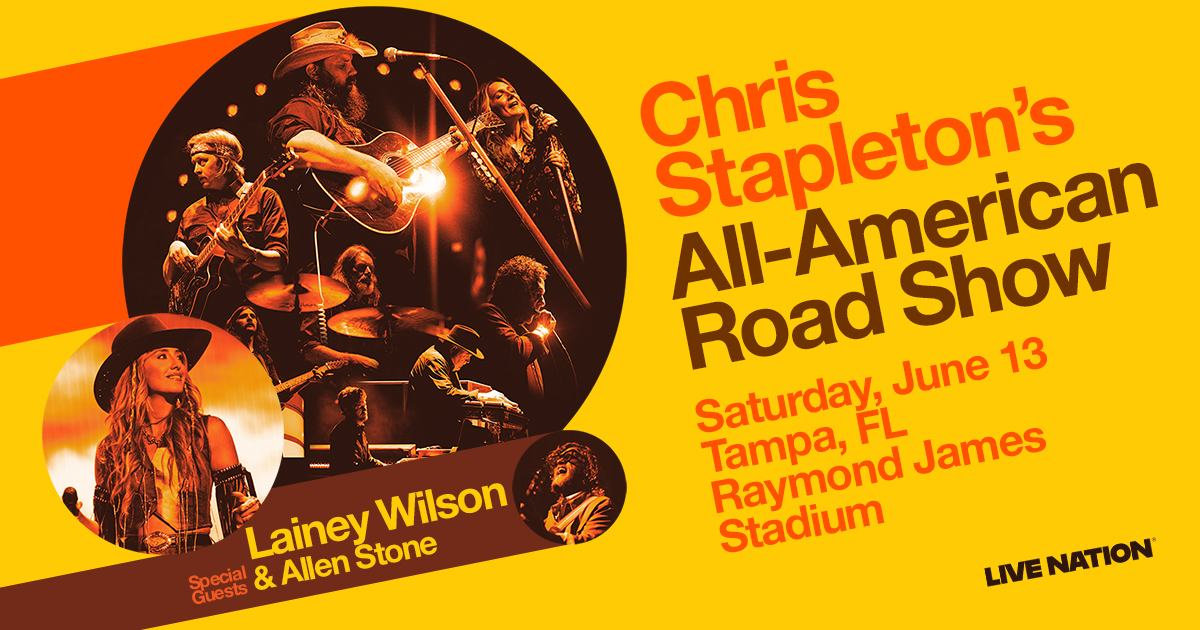 Chris Stapleton is bringing his All-American Road Show tour along with Lainey Wilson and Allen Stone to Raymond James Stadium on June 13th!