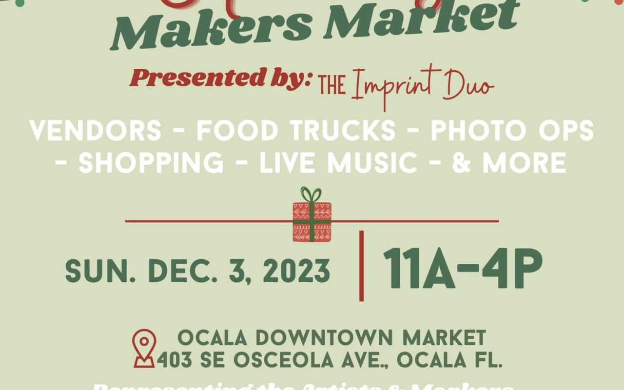 Representing the Artists & Makers of our community! Come out to the Ocala Downtown Market for a Holiday Makers Market hosted by The Imprint Duo. There will be ton’s of vendors, drinks, food trucks, shopping and live music! Just in time for all your holiday gift needs!