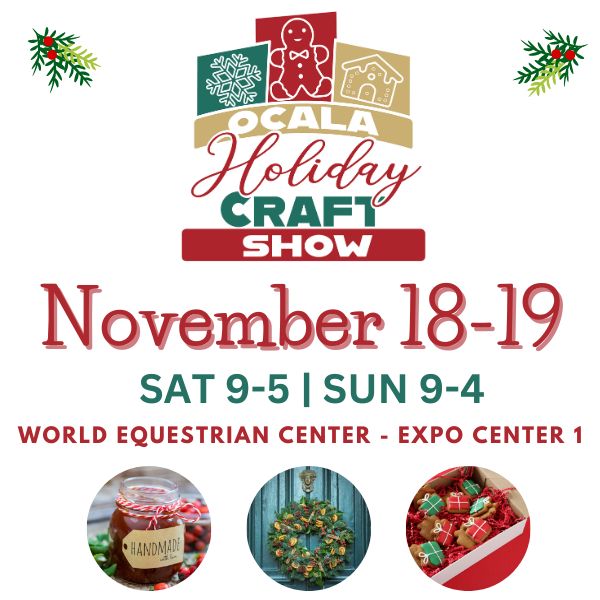 Ocala’s LARGEST INDOOR Holiday Craft Show is set for November 18-19 at the World Equestrian Center – Expo Center 1.