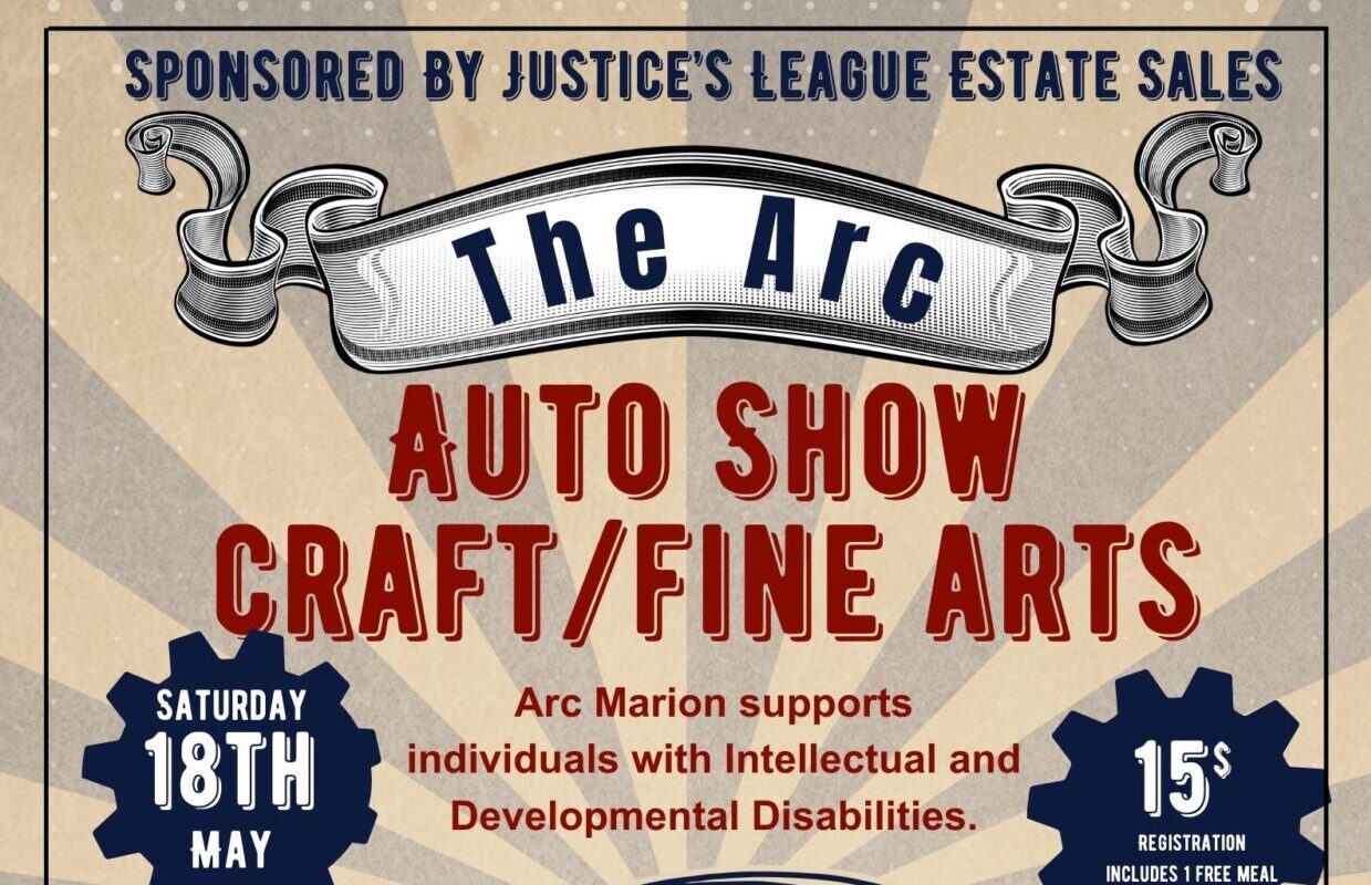 The ARC Auto Show and Craft/Fine Arts.. ARC Marion Supports individuals with intellectual and developmental disabilities. 100% Donations & Fees are going to the ARC Program. Car registration is only $15 and includes one free meal! (spaces available for fine arts/crafts for $10).
