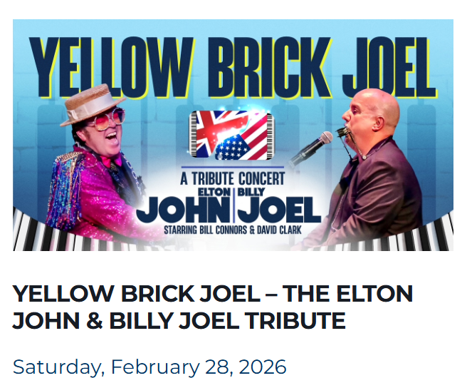 For more info and tickets, visit: YELLOW BRICK JOEL – THE ELTON JOHN & BILLY JOEL TRIBUTE – Circle Square Cultural Center | Live Entertainment & Performing Arts Center in Ocala, Florida