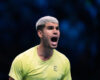 Carlos Alcaraz secured the year-ending No. 1 ranking in men’s tennis on Thursday by beating Lorenzo Musetti to sweep his group at the ATP Finals.