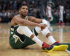 Giannis Antetokounmpo left the Milwaukee Bucks’ game against the Detroit Pistons on Wednesday night after straining his right calf in the first quarter.
